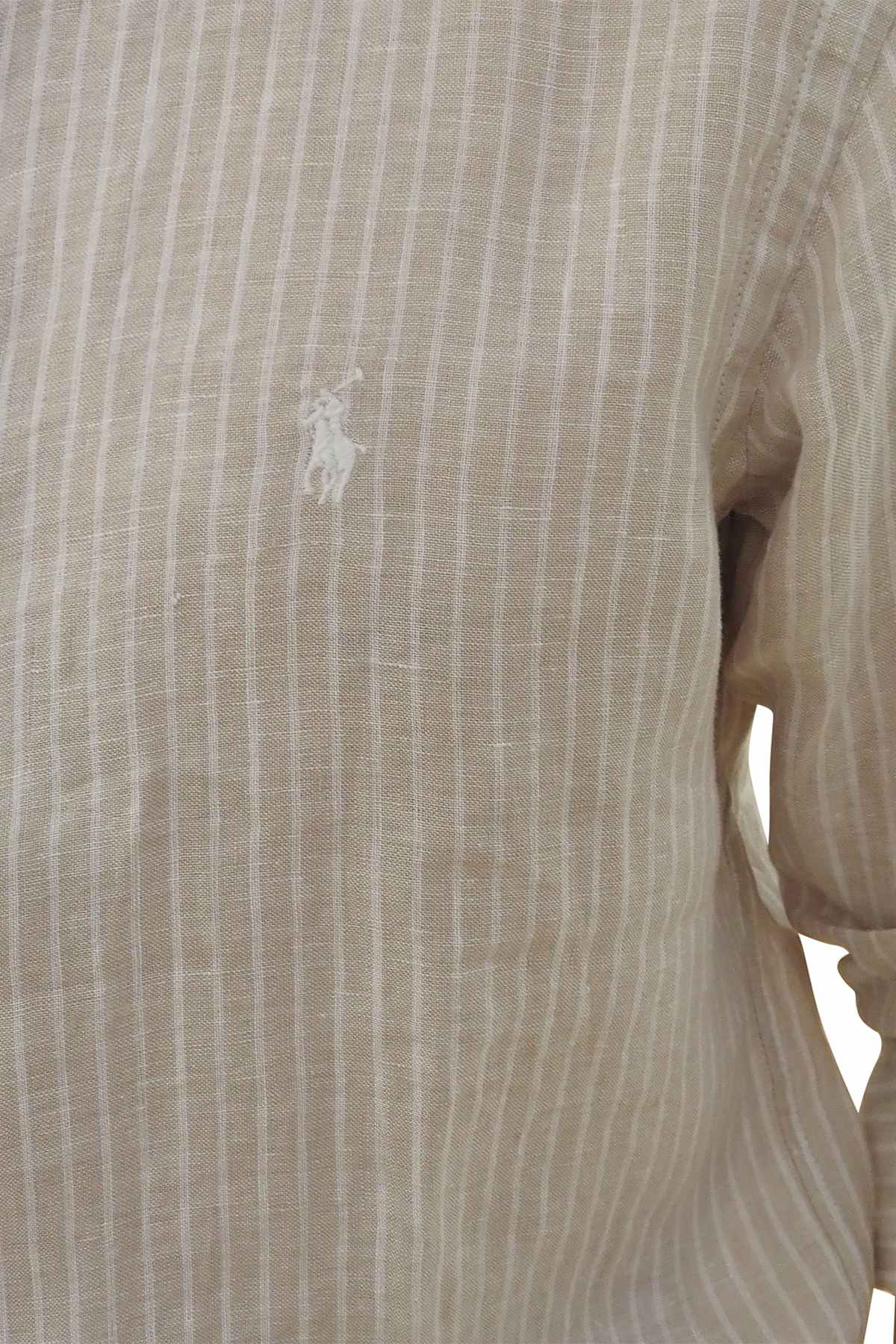 Camicia lino riga bianca e beige