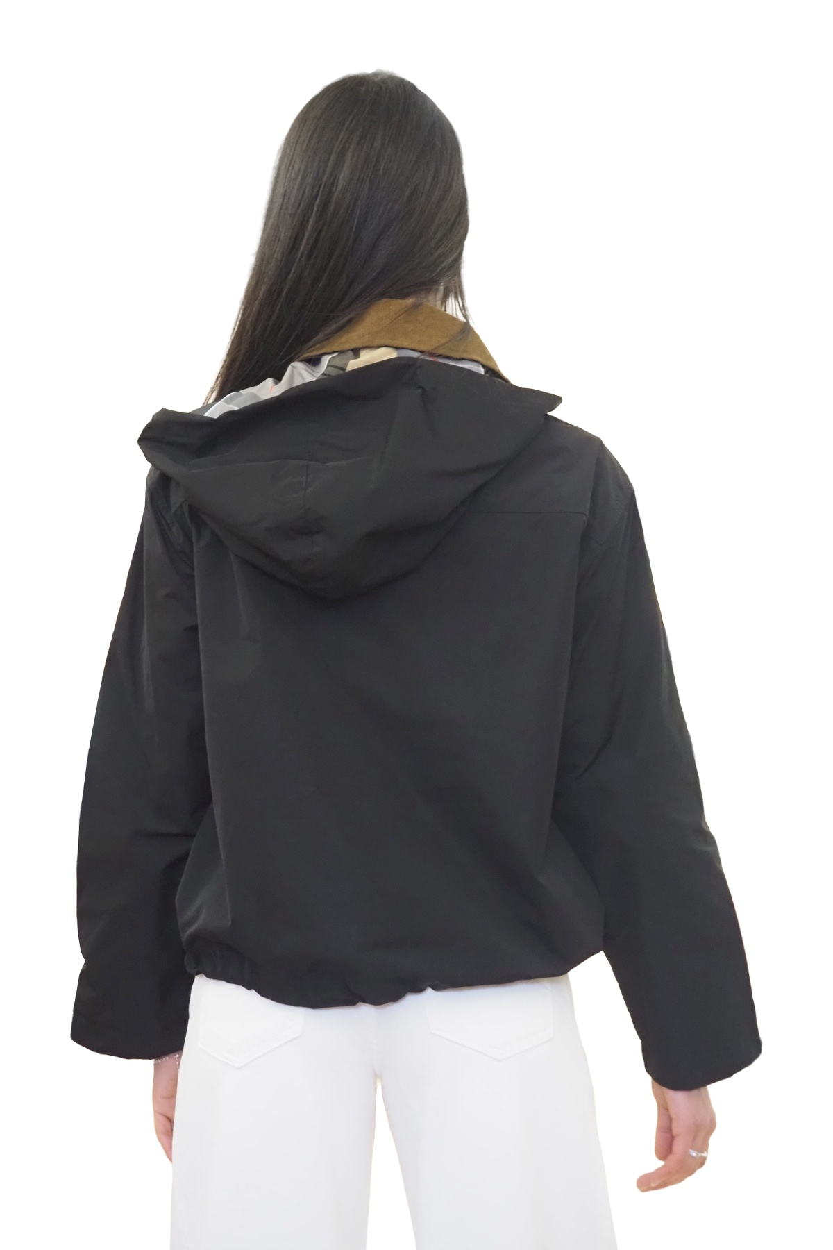 • Con cappuccio foderato in check
