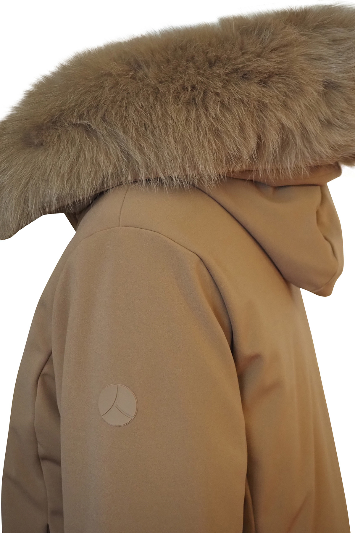 • Cappuccio fisso decorato con vera pelliccia