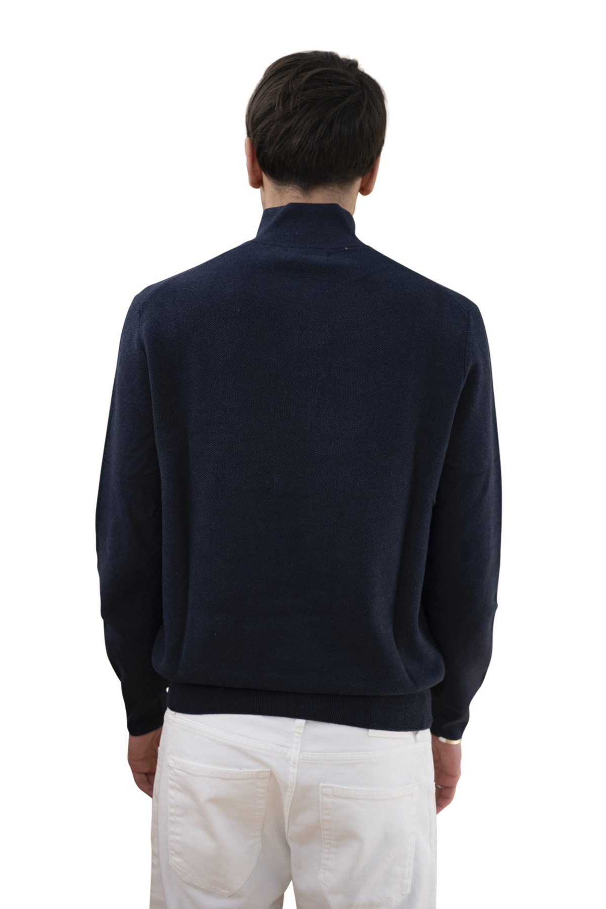 Maglia blu mezza zip in piqué