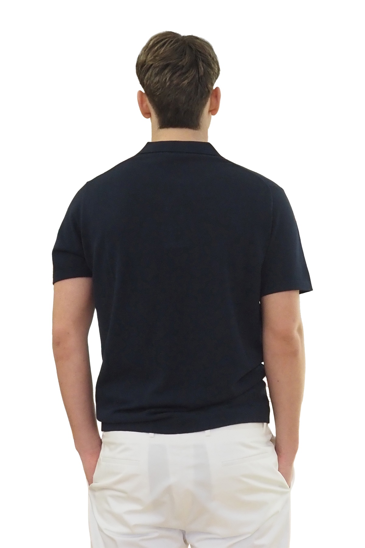 Polo blu in maglia senza bottoni