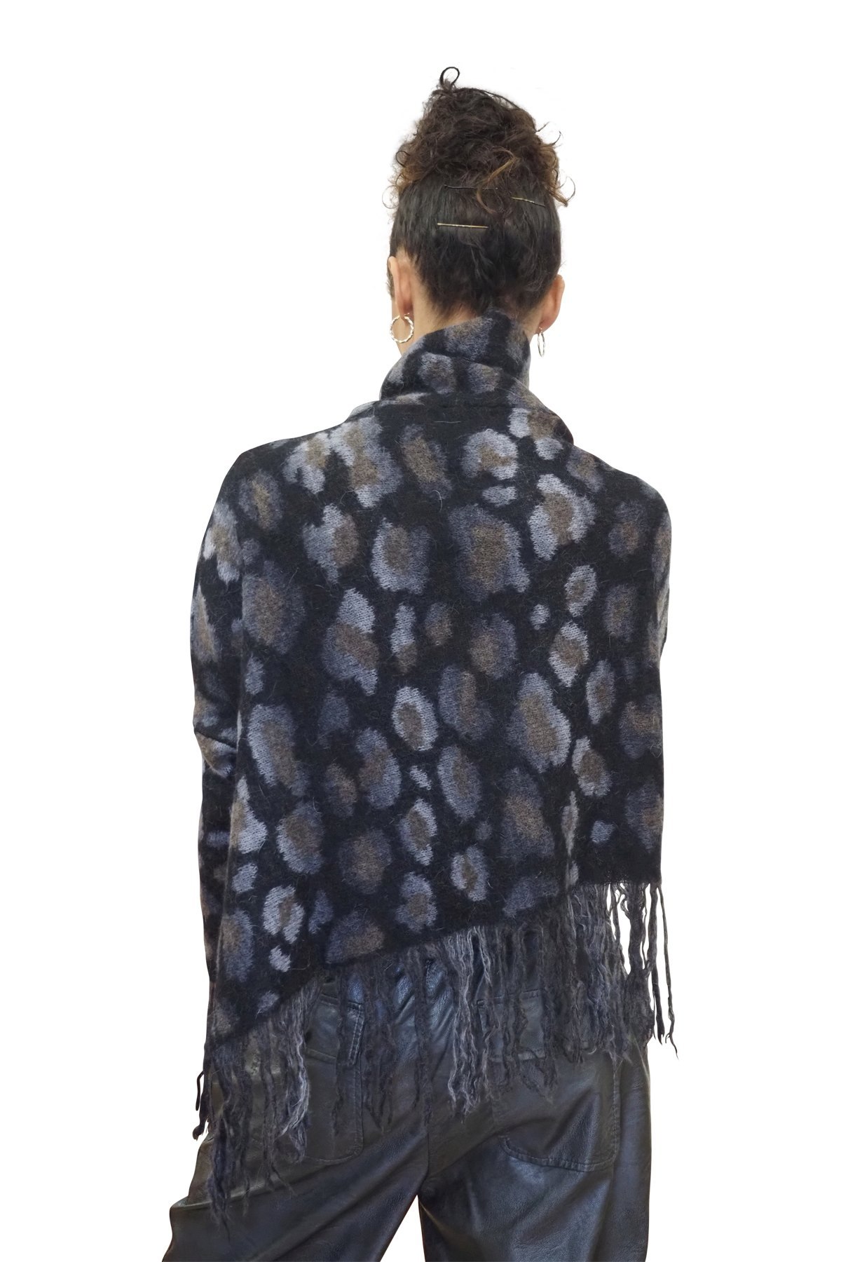 Pullover mantella con frange grigio