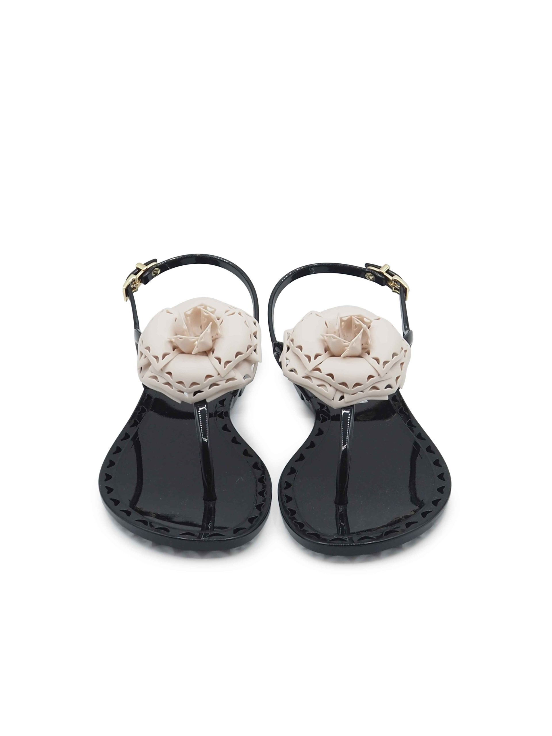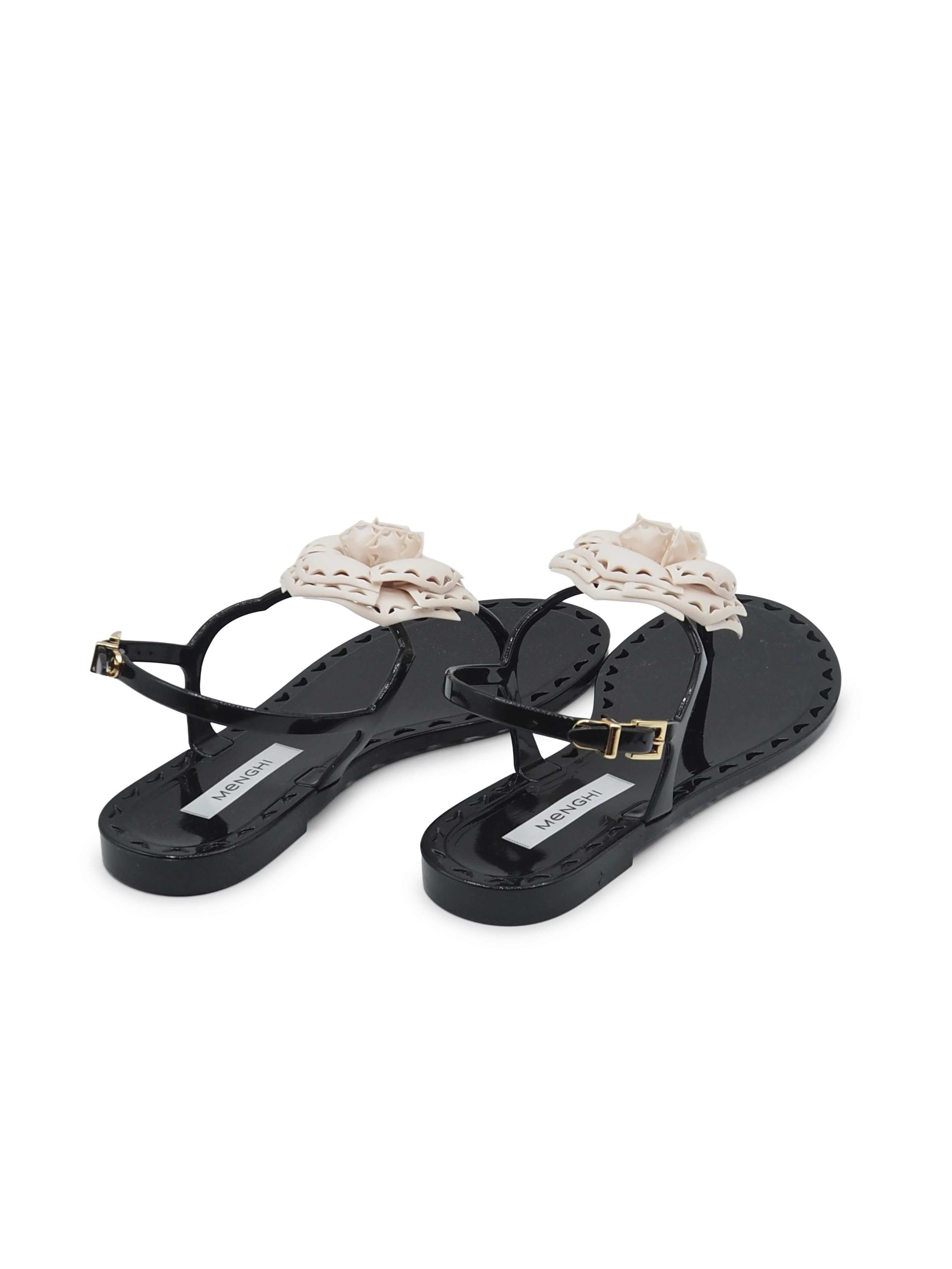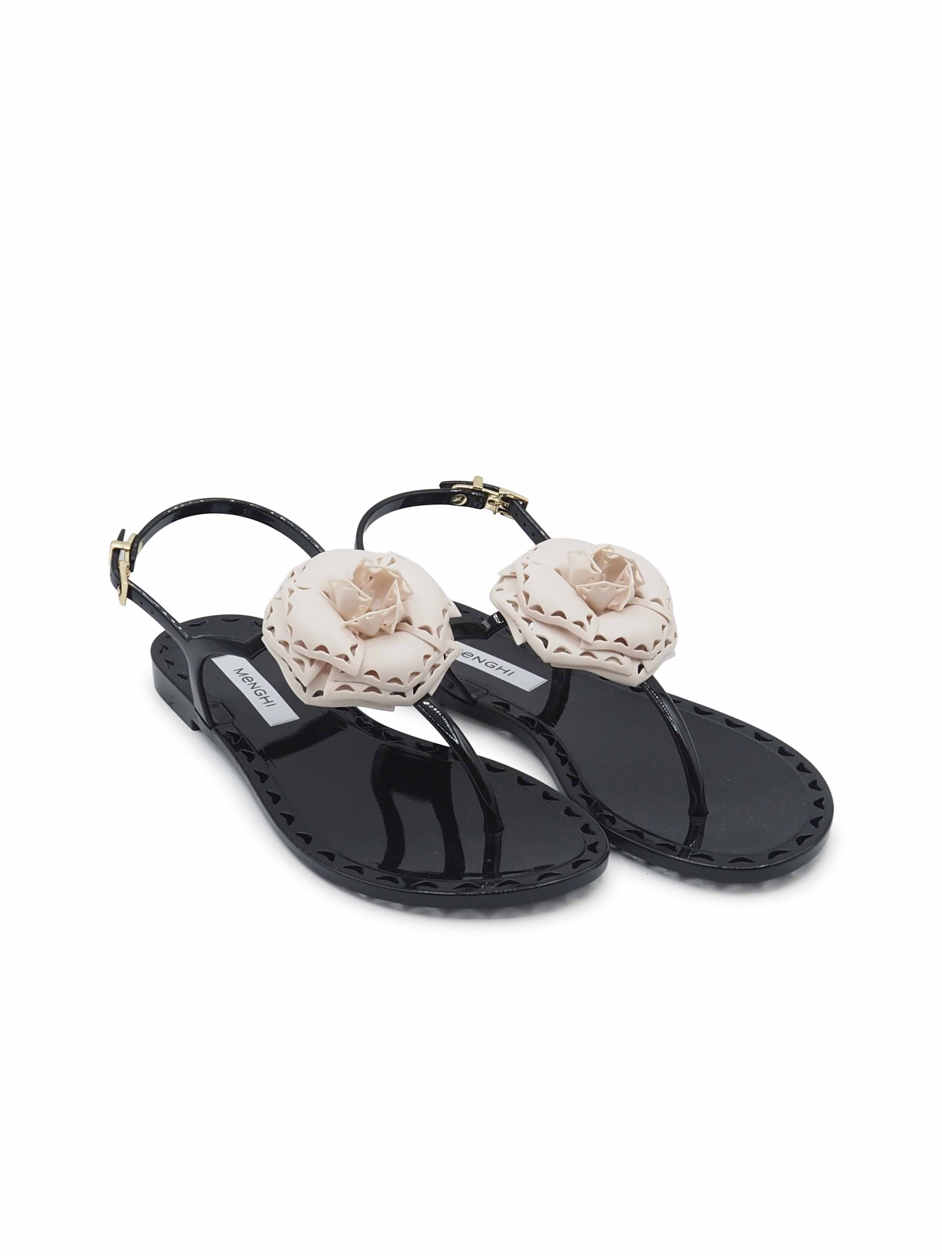 Sandali neri con fiore bianco