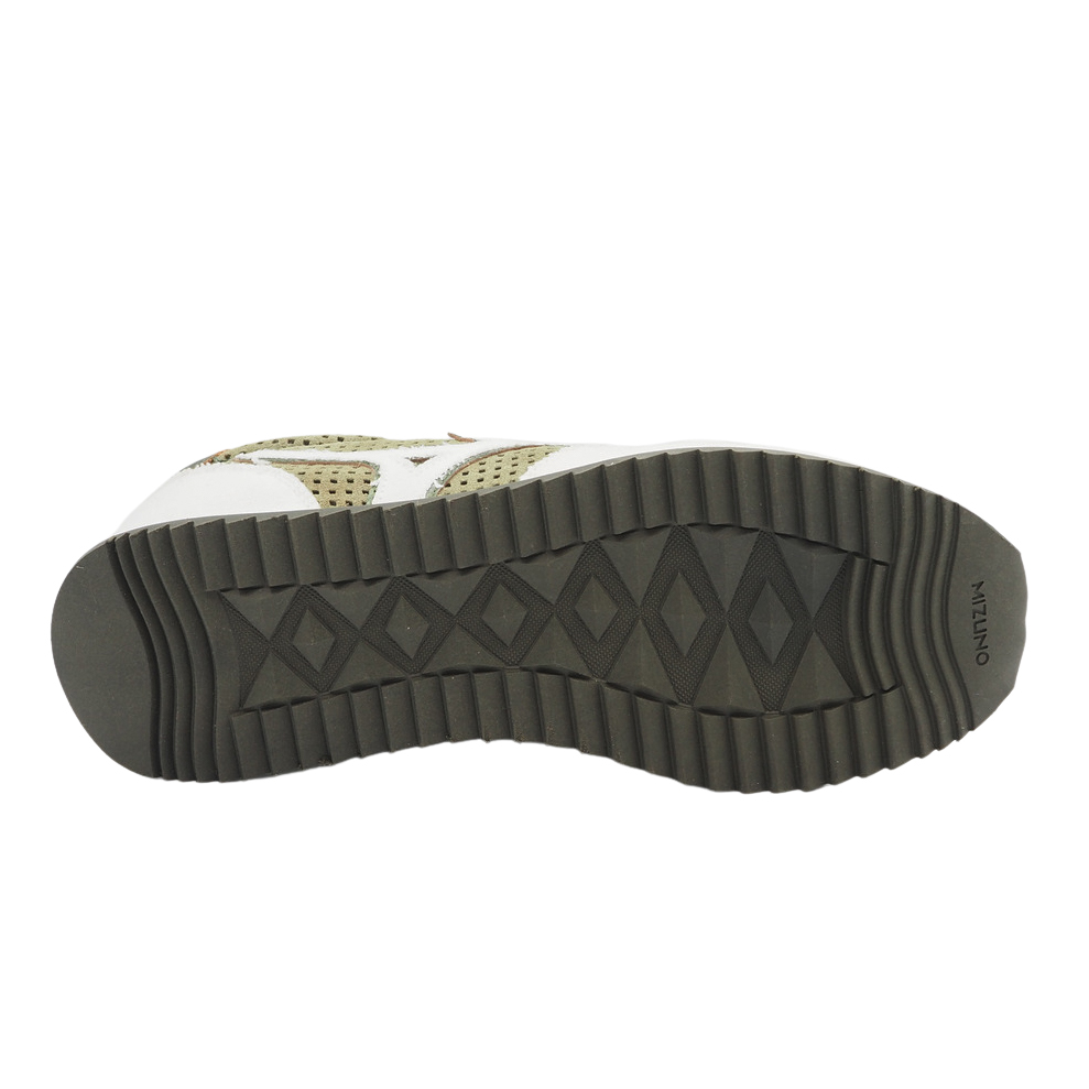 Sneakers leggere verdi pelle e tela. Scarpe leggere e comodissime fatte per le lunghe camminate, qui in una leggera combinazione di pelle e tela traforata.